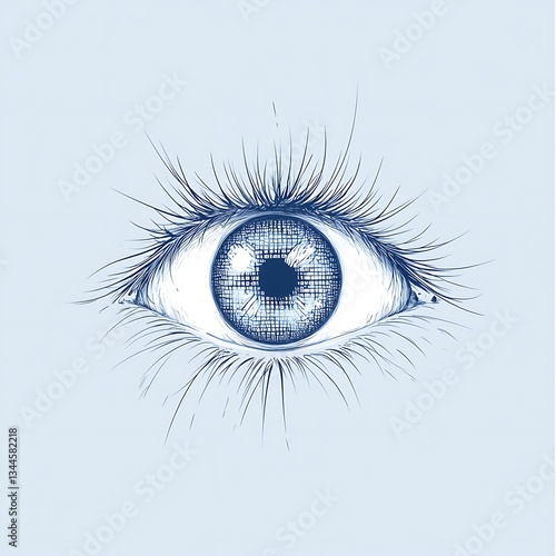 Blue Eye for Detailed Sketch, Pastel Background.