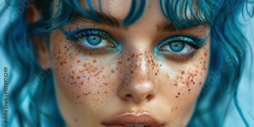 Blue eyes and freckles. AI.