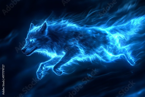 Blue Fire Wolf Digital Art Fantasy Animal Magic Mystical Abstract