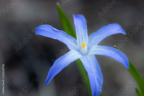 Blue flower scilla luciliae on a flower bed macro. Spring in Finland.