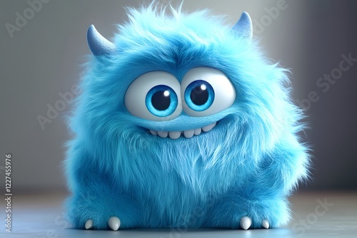 Blue Fuzzle: Adorable 3D Cartoon Monster Character