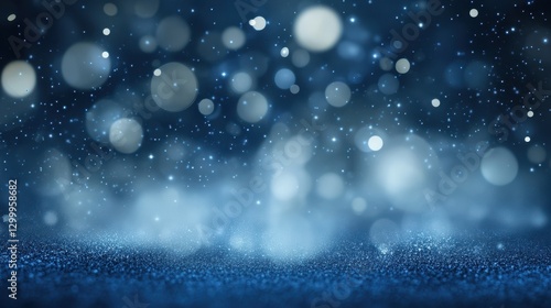 Blue glitter surface catches the light with blurred background orbs