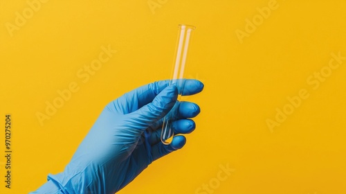 Blue Gloved Hand Holding Medical Equipment Against Yellow Background