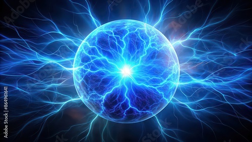 Blue glowing plasma ball lightning abstract background, plasma, ball, lightning, abstract, background, energy