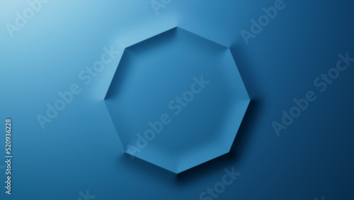 Blue Gradient Background with Embossed Octagon. Minimalist Surface with Extruded 3D Shape. 3D Render.