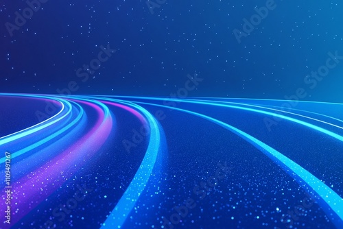 Blue gradient background with speed lines, curved white road, soft lighting, dynamic motion, minimalist style, high-tech, clean design, wide-angle lens shot 1