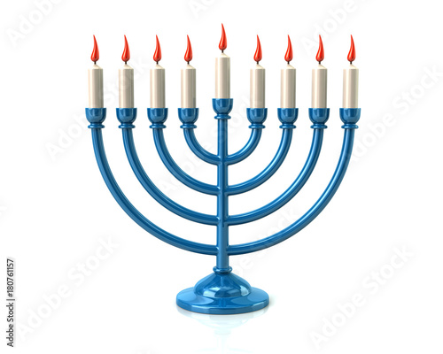 Blue Hanukkah menorah with burning candles