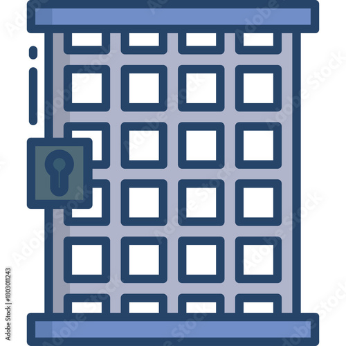 Blue jail cell door with lock and transparent background illustration representing confinement and security a symbolic representation of restriction and freedom loss