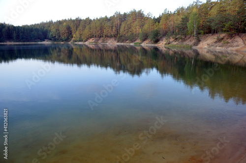 Blue Lake in the Chernigow region, Ukraine. Former quarry of quartz sand for glass production. Popular local resort at present