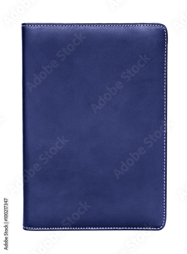 blue leather notebook isolated on white background