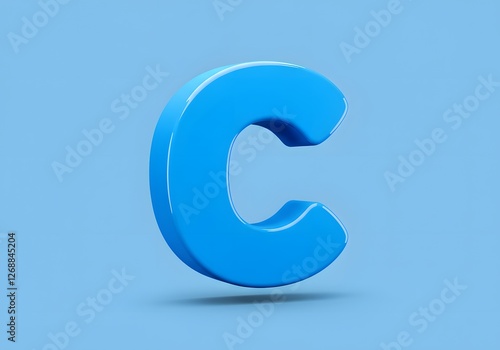 Blue Letter C Isolated on Light Blue Background with Shadow