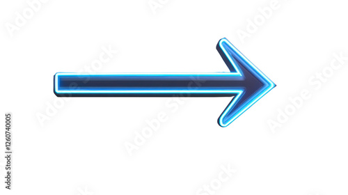 Blue neon arrow pointing right on transparent background