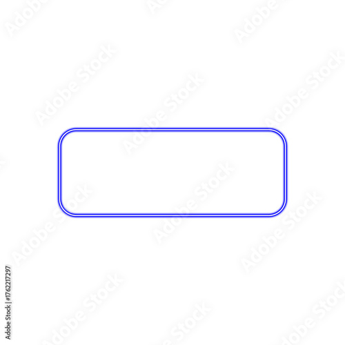 Blue Neon Rounded Rectangle Frame. Glowing Futuristic UI Button Template