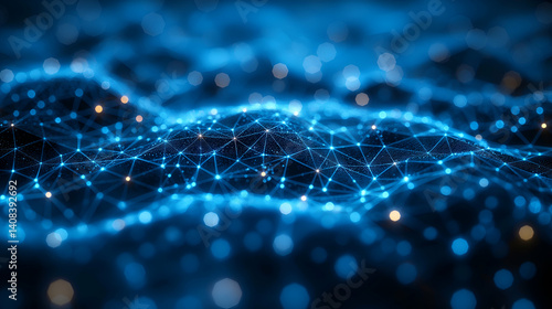 Blue Network Waves Futuristic Digital Connections, Tech Art Background.