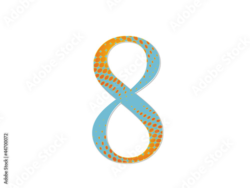 blue number with a gradient of red dots on a white ground