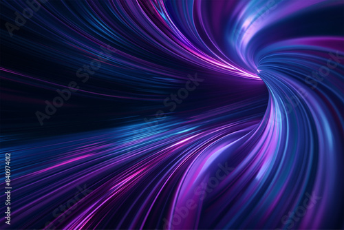 Blue purple light line through dark background, hyper speed warp in space
