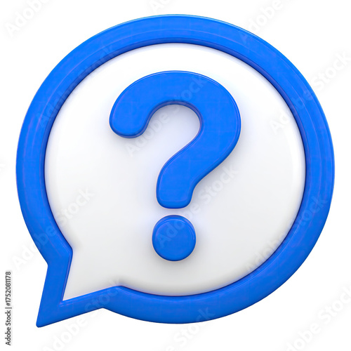 Blue question mark in white speech bubble; 3D render