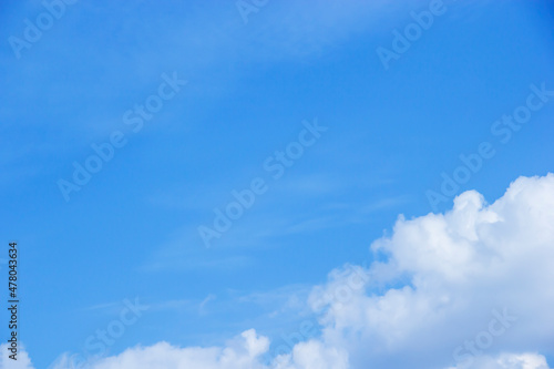 Blue sky background and white clouds soft focus, and copy space horizontal shape.