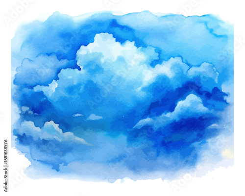 Blue Sky Watercolor Background with Soft Clouds