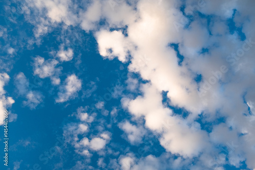 Blue Sky with Wispy Clouds at Sunset. This sky photo is perfect for backgrounds, themes of tranquility, nature, or freedom, and can be used in designs related to relaxation, inspiration or the outdoor