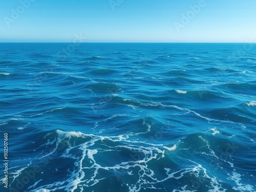 Blue turquoise ocean with large wavy surface and foamy white water, ocean texture, wave patterns, breaking waves, large wavy surface
