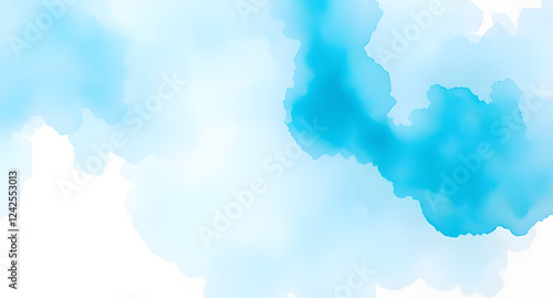 Blue turquoise teal mint cyan white abstract watercolor. Colorful art background. Light pastel. Brush splash daub stain grunge. Like a dramatic sky with clouds. Or snow storm cold wind frost.