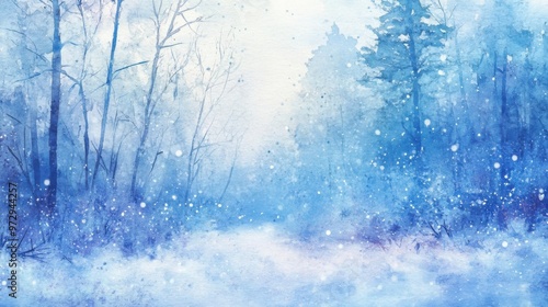 Blue watercolor painting on winter seasonal morning texture, sunshine or sparkling lights and glittering glow