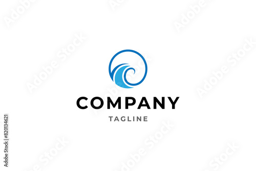 blue wave logo with circle shape combination in flat vector design style