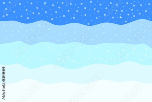 Blue winter background with snow and waves. Abstract underwater bubble pattern illustration. Layered blue holiday scenery with falling dots