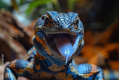 Blue-tongued Lizard: Displaying blue tongue while basking in sunlight, showcasing unique feature.