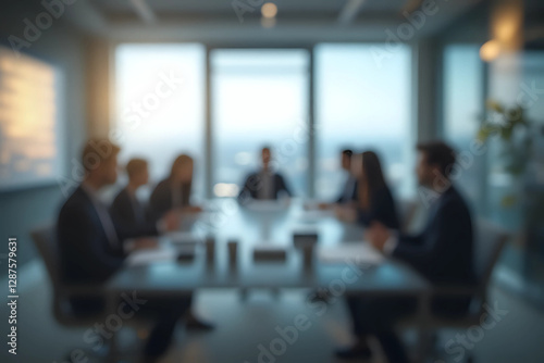 Blur office meeting blurred background with business people working group in boardroom discussion for teamwork brainstorming, executive seminar or professional training in small startup enterprise