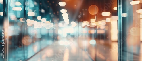 Blurred empty open space office. Abstract light bokeh at office interior background