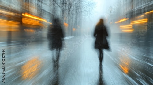 Blurred Motion City Street Scene: Anonymous Figures in Urban Setting