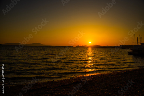 BODRUM, TURKEY: Beautiful landscape with sea view at sunset in Bodrum.