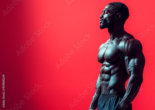 bodybuilder man on solid color background. gym or health concept. Space for text
