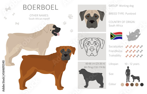 Boerboel clipart. Different coat colors and poses set