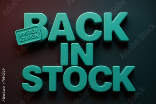 Bold banner featuring BACK IN STOCK with LIMITED EDITION tag, glossy promotional style for retail offers.