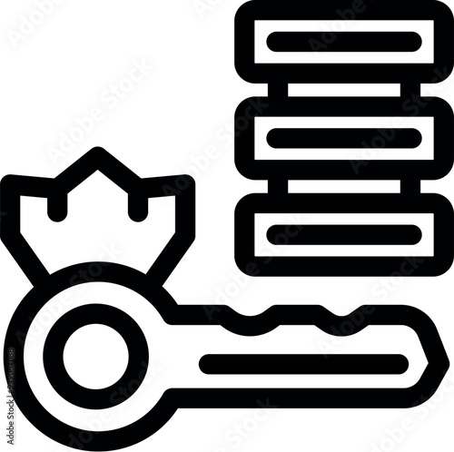 Bold icon of a key unlocking a server rack, representing cybersecurity and data protection