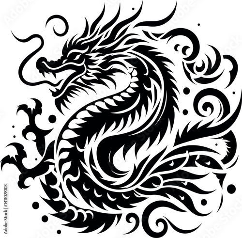 Bold Tribal Tattoo Concept Featuring an Oriental Dragon