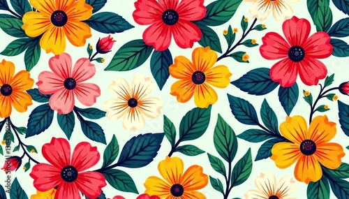 Bold, vibrant floral pattern, ideal for summer promotions , art, celebration