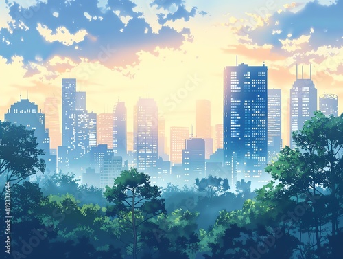 Border A seamless blend between a bustling cityscape and a tranquil forest