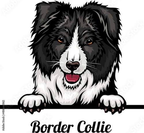 Border Collie - Color Peeking Dogs - dog breed. Color image of a dogs head isolated on a white background