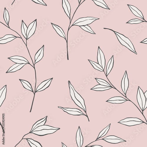 Botanical hand drawn seamless pattern with leaves. Vector floral hand sketched background