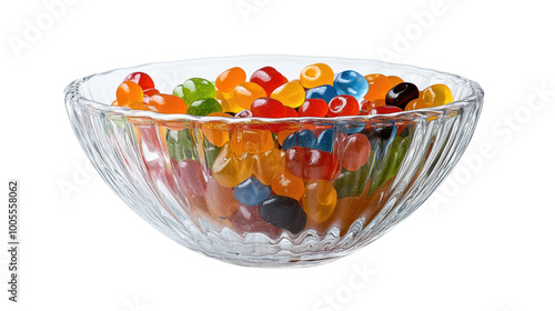 bowl filled with colorful jellybeans on a transparent background