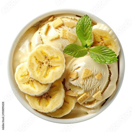 bowl of Banana slice and Ice Cream isolated on transparent background remove png, clipping path