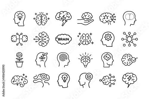Brain Mind & Intelligence Icons Pack – 25 Cognitive Science Vector Symbols