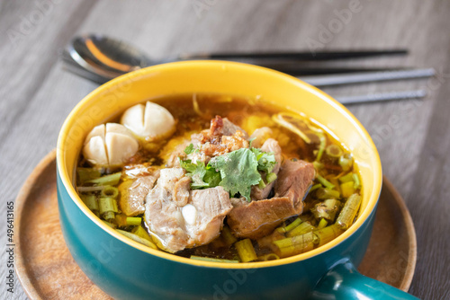 Braised pork kaolao with morning glory and sprouts, local Thai food