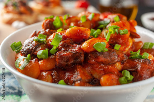 Braised white beans with mushrooms and tomatoes in spicy sauce