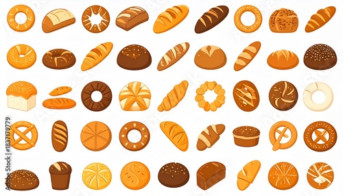 Bread and Bakery Food Icon Set Illustration