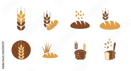 Bread Wheat Icons Bakery Logo Design